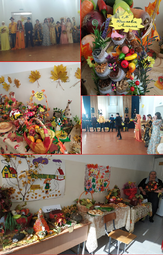 Номинация «Дары осени» - команда 5 «в» класса; конкурс стенгазет «Осенняя палитра» - команда 11 «а» класса; конкурс поделок – команды 5 «в» и 8 «б» классов. А в номинации «Мисс Осень-2019» стала учащаяся 9 «а» класса Дудаева Макка. Все победители были награждены грамотами и сладкими призами.
