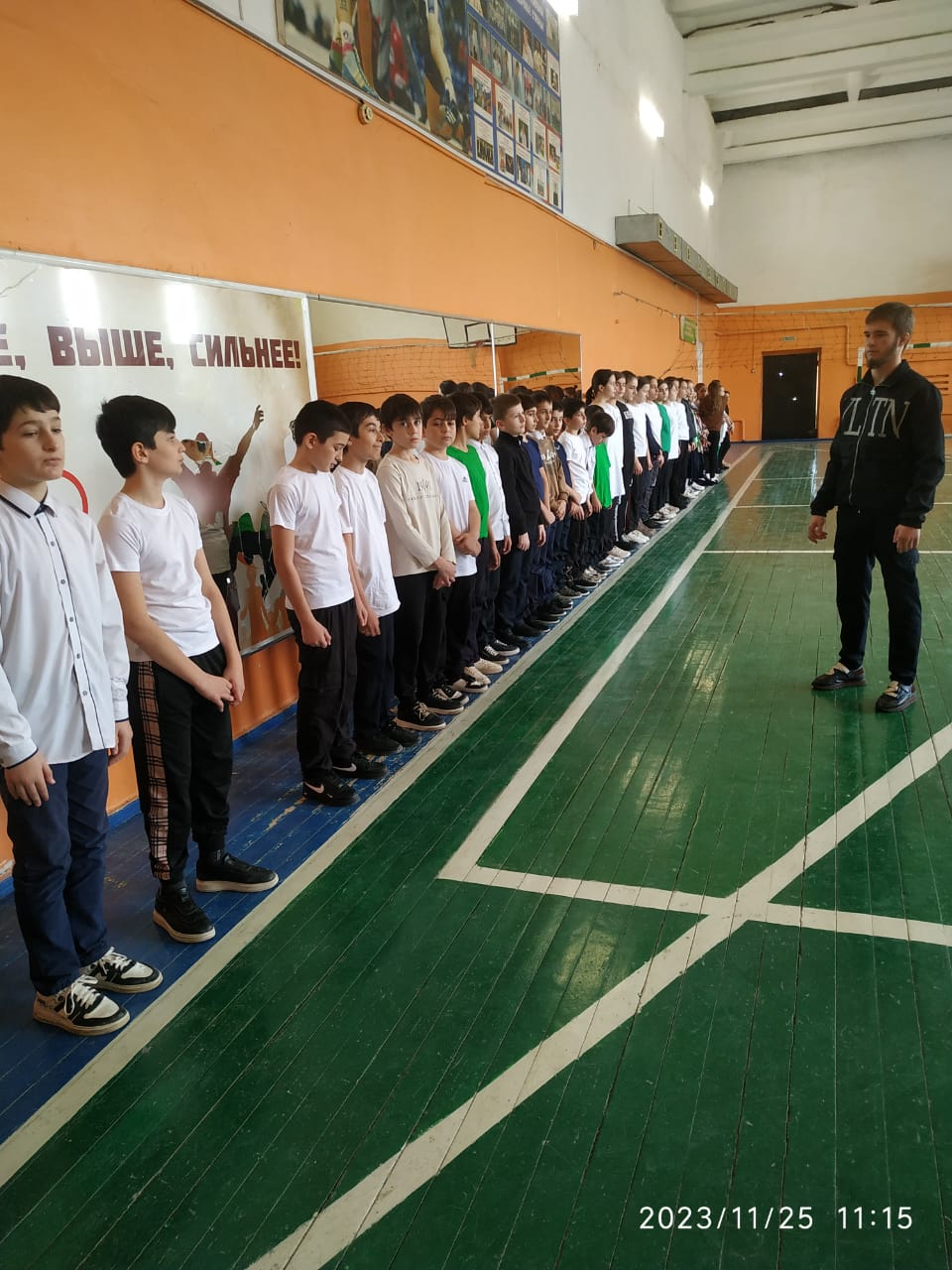 в МБОУ"Гудермесская СШ №2" прошла Всероссийская акция "Зарядка с чемпионом" Чемпионом СКФО по грепплингу обучающиеся 11 "А" класса Дашаев Увайс, провел спортивное мероприятие с обучающимися 5-8 классов.