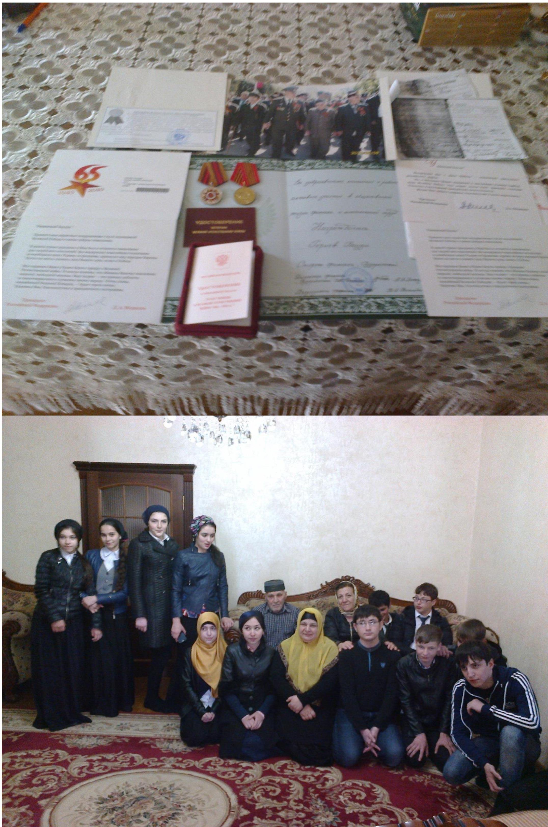 ГЕРИЕВ БАУДИ,1926 г.р., ветеран Труда. В годы Великой Отечественной войны работал в тылу на медзаводе в г.Балхаше Казахской ССР .На этом заводе изготавливались патроны.Награжден медалями к 65-летию и к 70-летию ВОВ. Также награжден благодарственными письмами от президента РФ В.В.Путина , председателя правительства Российской Федерации Д.А.Медведева и главы Чеченской Республики Рамзана Ахматовича Кадырова.